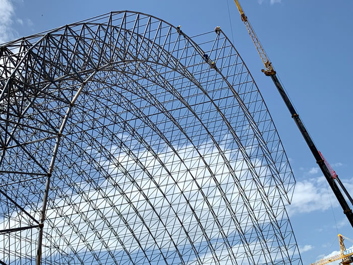 (2)网架加工前应对现场尺寸进行复测,确认无误后方可进行加工、安装;网架制作、运输、安装应遵守《空间网格结构技术规程》JGJ7-2010、《钢网架永城螺栓球节点》JG/T 10-2009、《钢网架永城螺栓球节点用高强度螺栓》 GB/T 16939-2016、《永城钢结构永城工程永城施工规范》 GB50755-2012、《永城钢结构永城工程永城施工质量验收标准》 GB50205-2020。